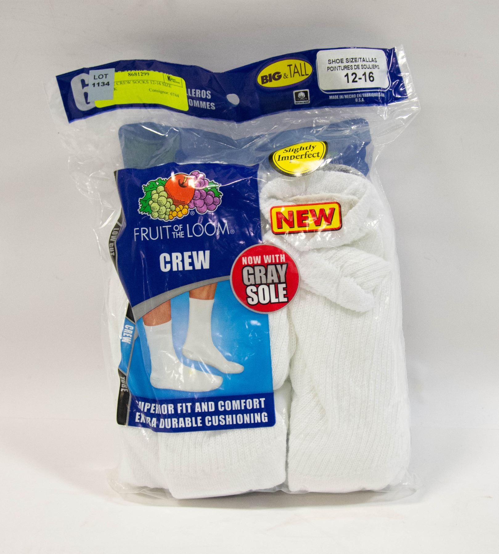 WHITE CREW SOCKS 12-16 SIZE 6-PACK