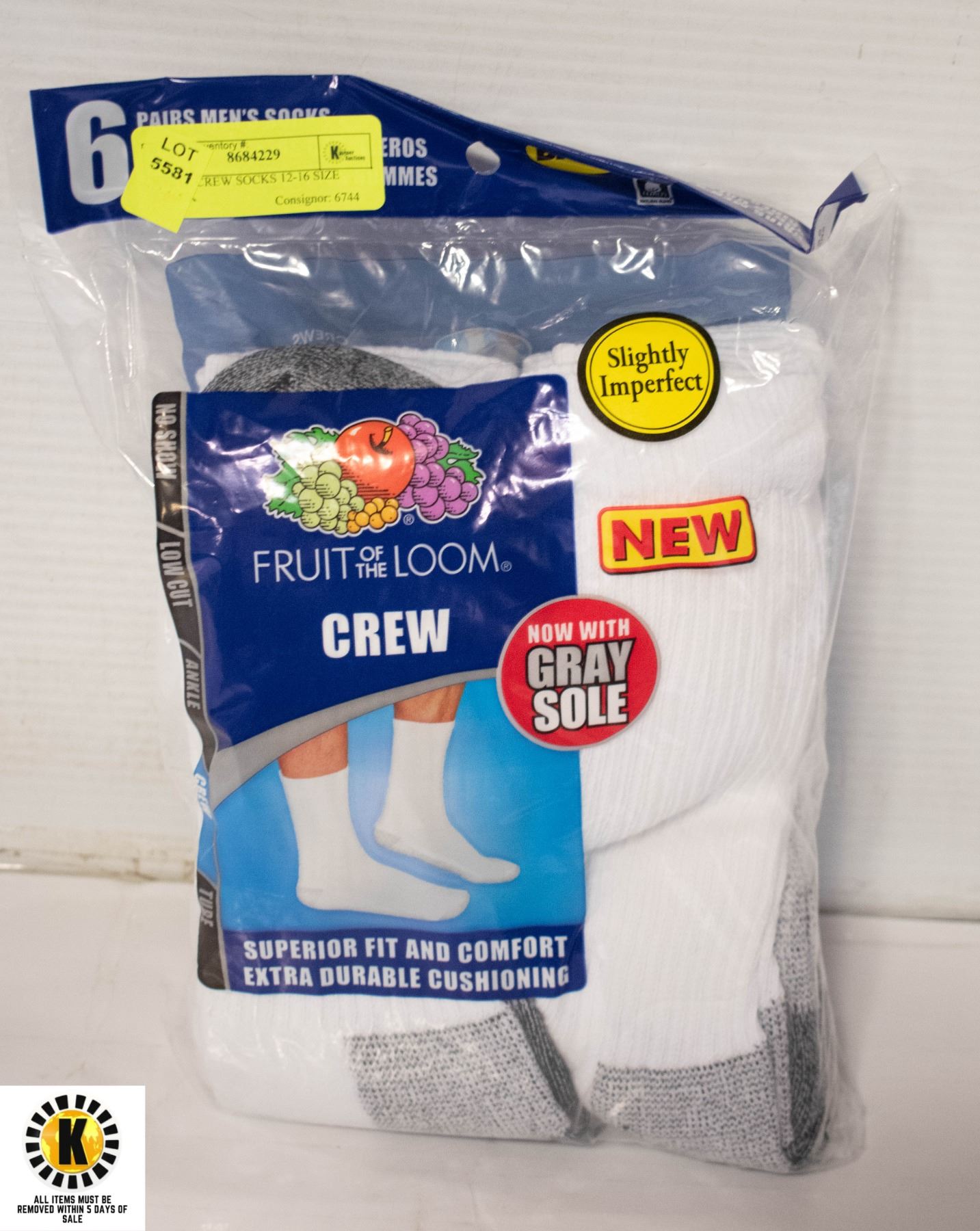 WHITE CREW SOCKS 12-16 SIZE 6-PACK