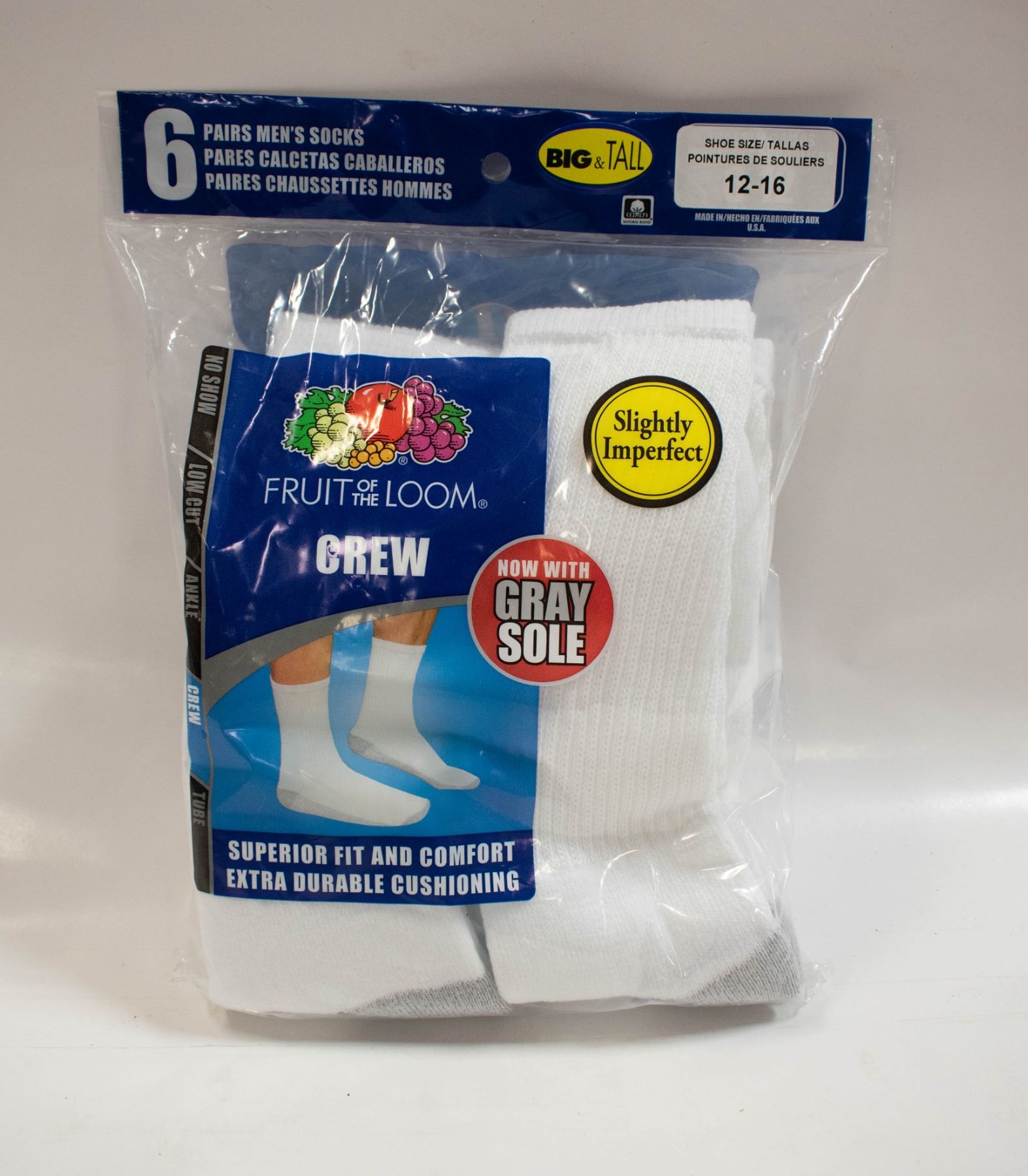 WHITE CREW SOCKS 12-16 SIZE 6-PACK