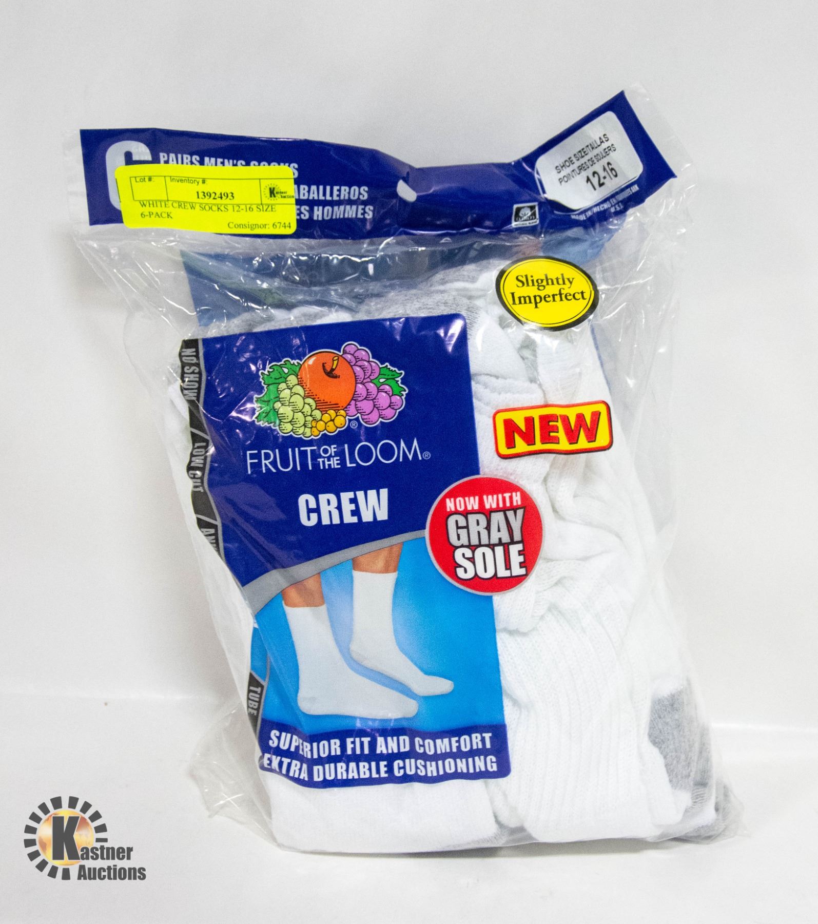 WHITE CREW SOCKS 12-16 SIZE 6-PACK
