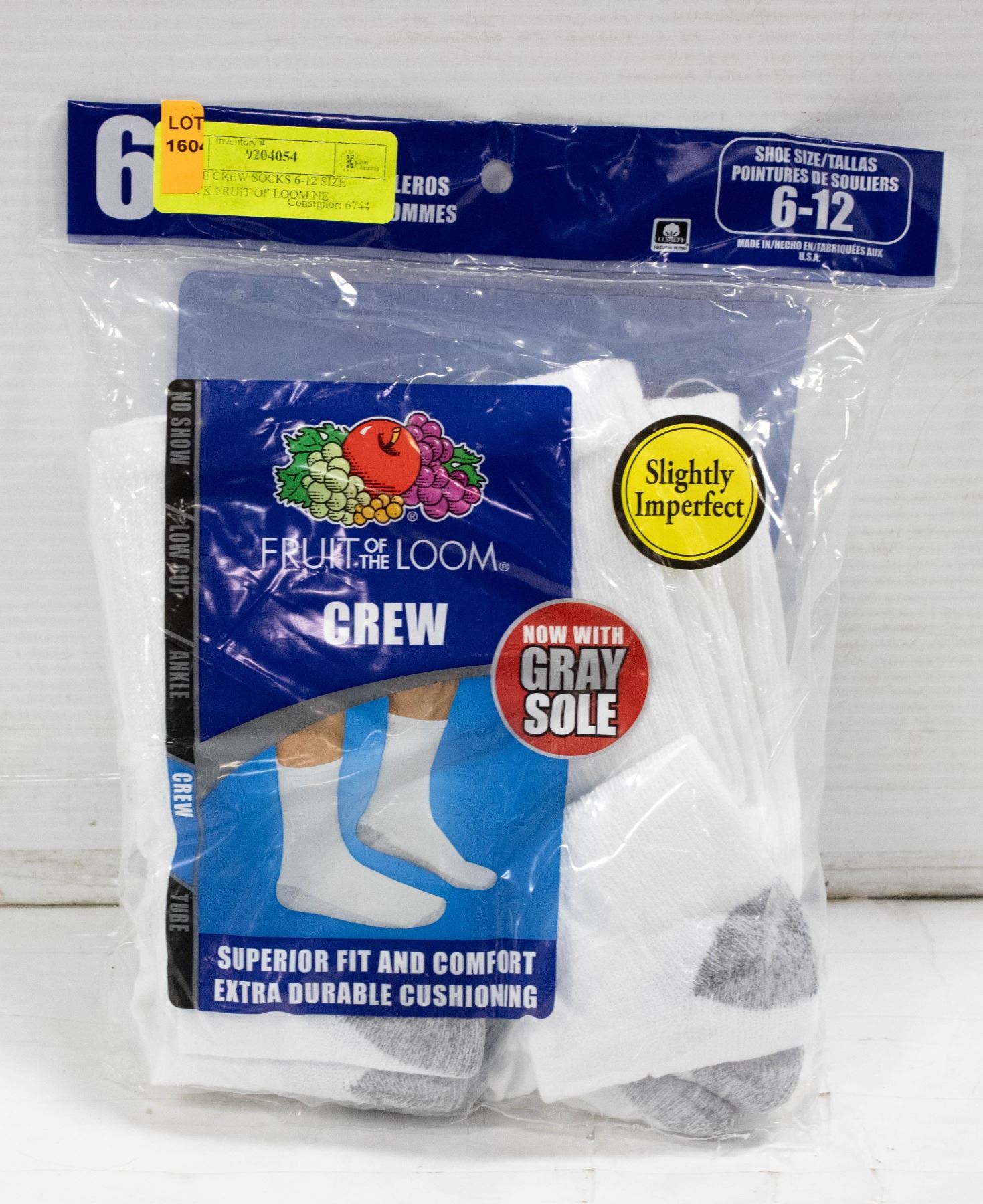WHITE CREW SOCKS 6-12 SIZE 6-PACK FRUIT OF LOOM NE