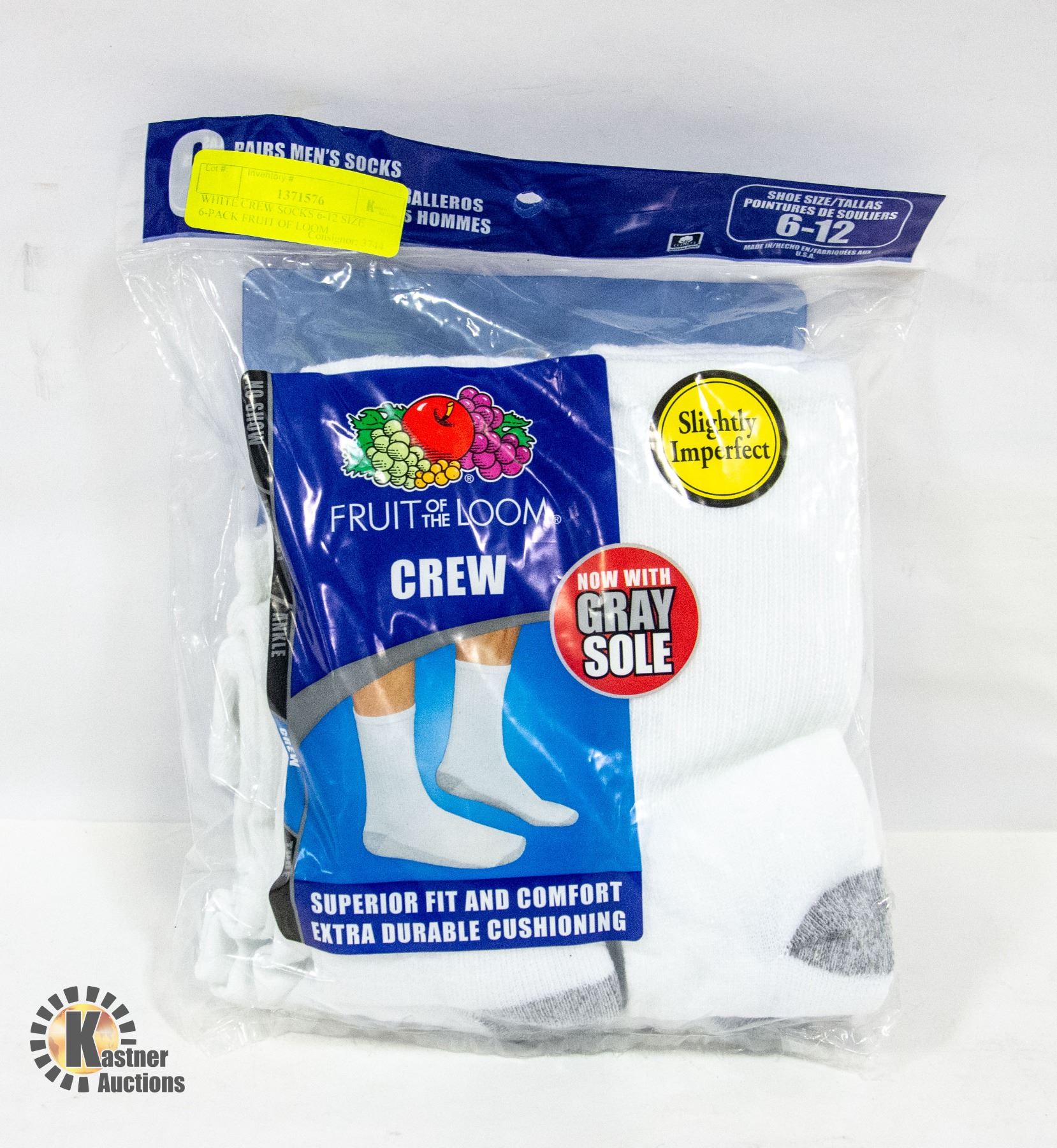 WHITE CREW SOCKS 6-12 SIZE 6-PACK FRUIT OF LOOM