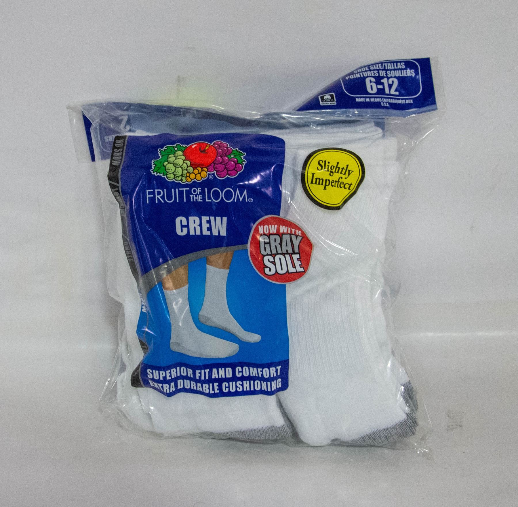 WHITE CREW SOCKS 6-12 SIZE 6-PACK FRUIT OF LOOM