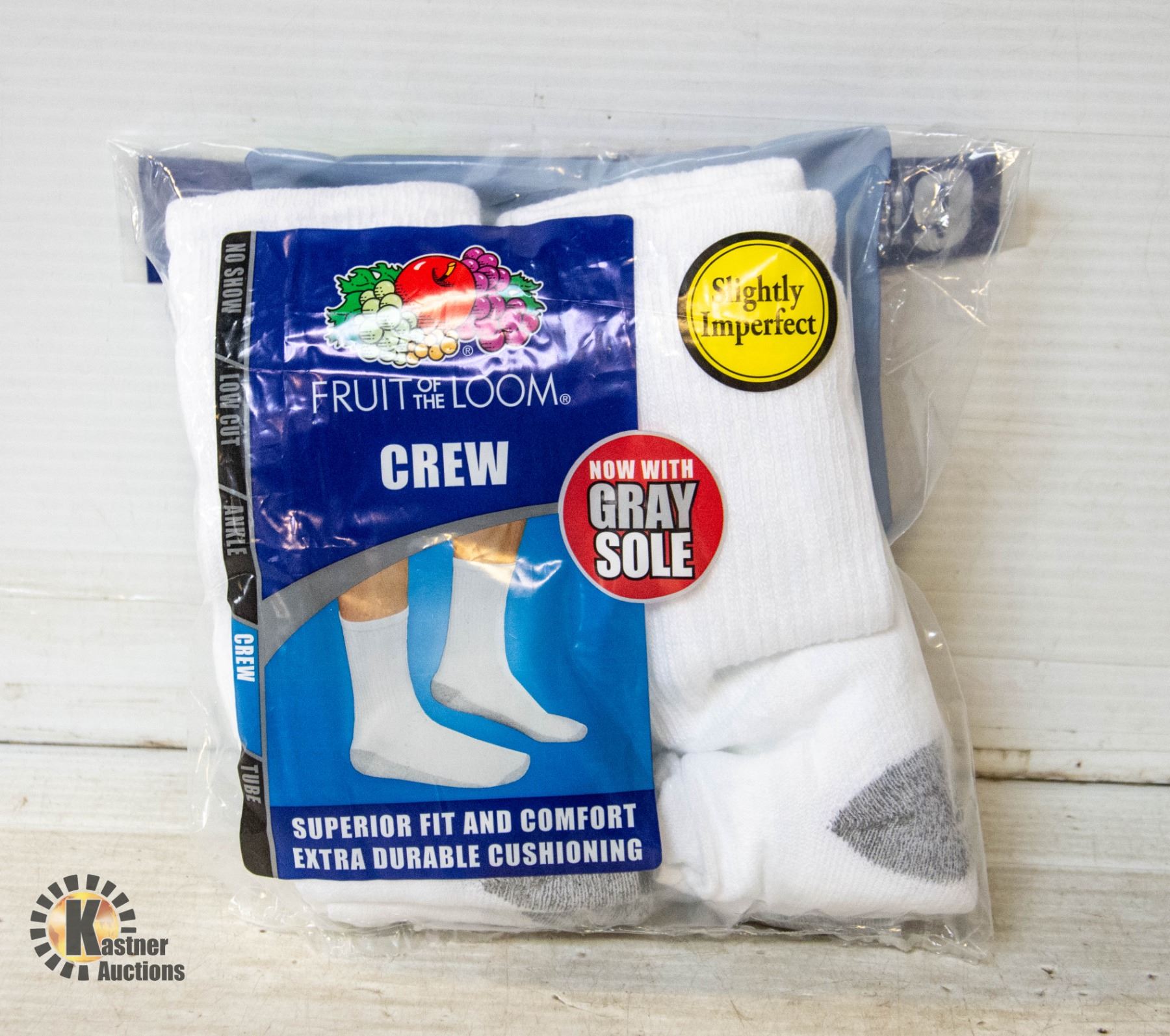 WHITE CREW SOCKS 6-12 SIZE 6-PACK FRUIT OF