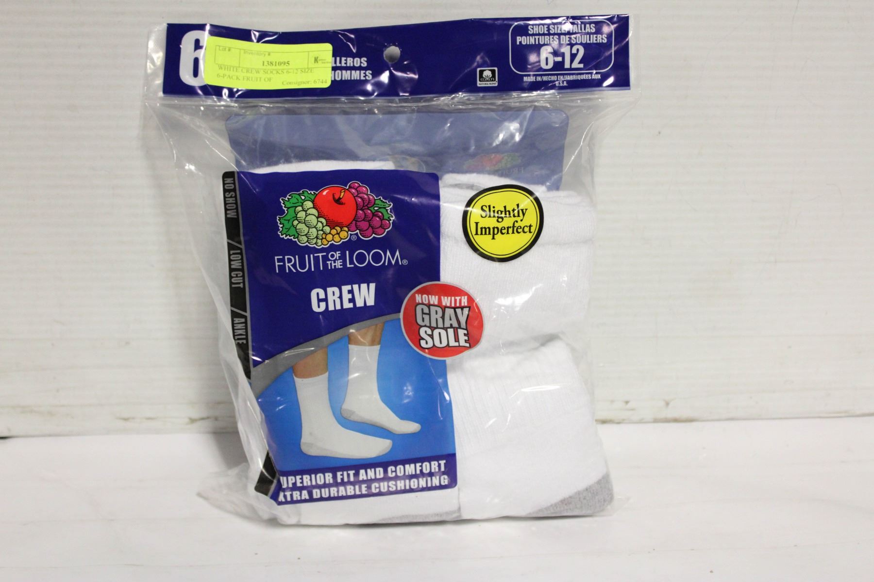 WHITE CREW SOCKS 6-12 SIZE 6-PACK FRUIT OF