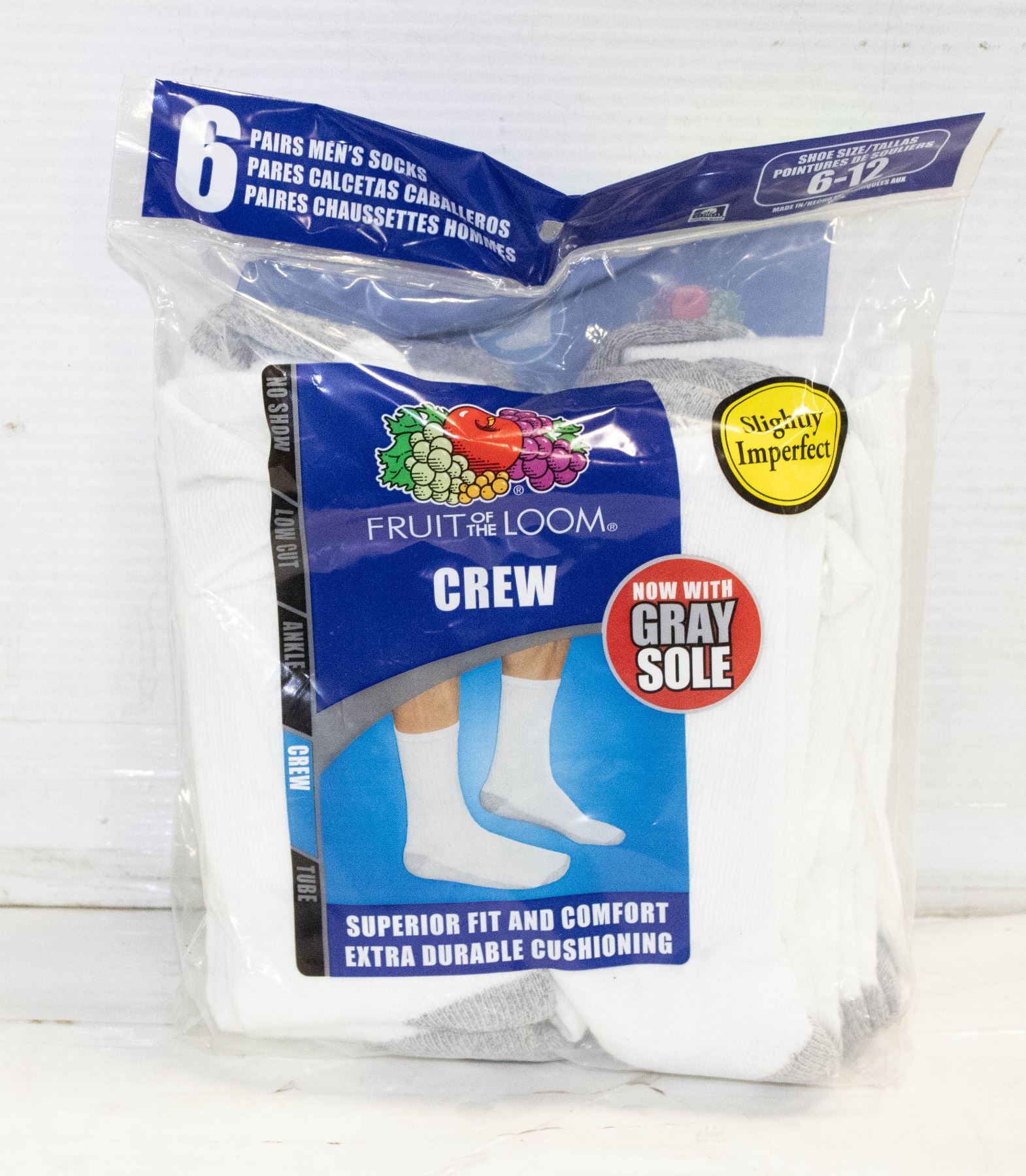 WHITE CREW SOCKS 6-12 SIZE 6-PACK NEW SEALED