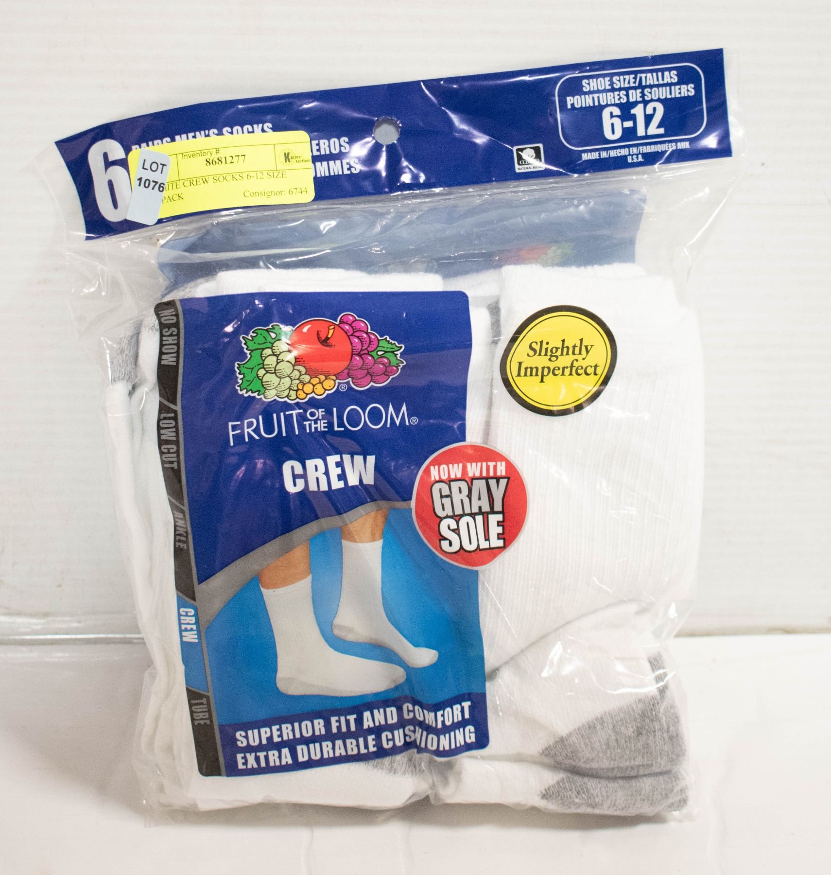 WHITE CREW SOCKS 6-12 SIZE 6-PACK