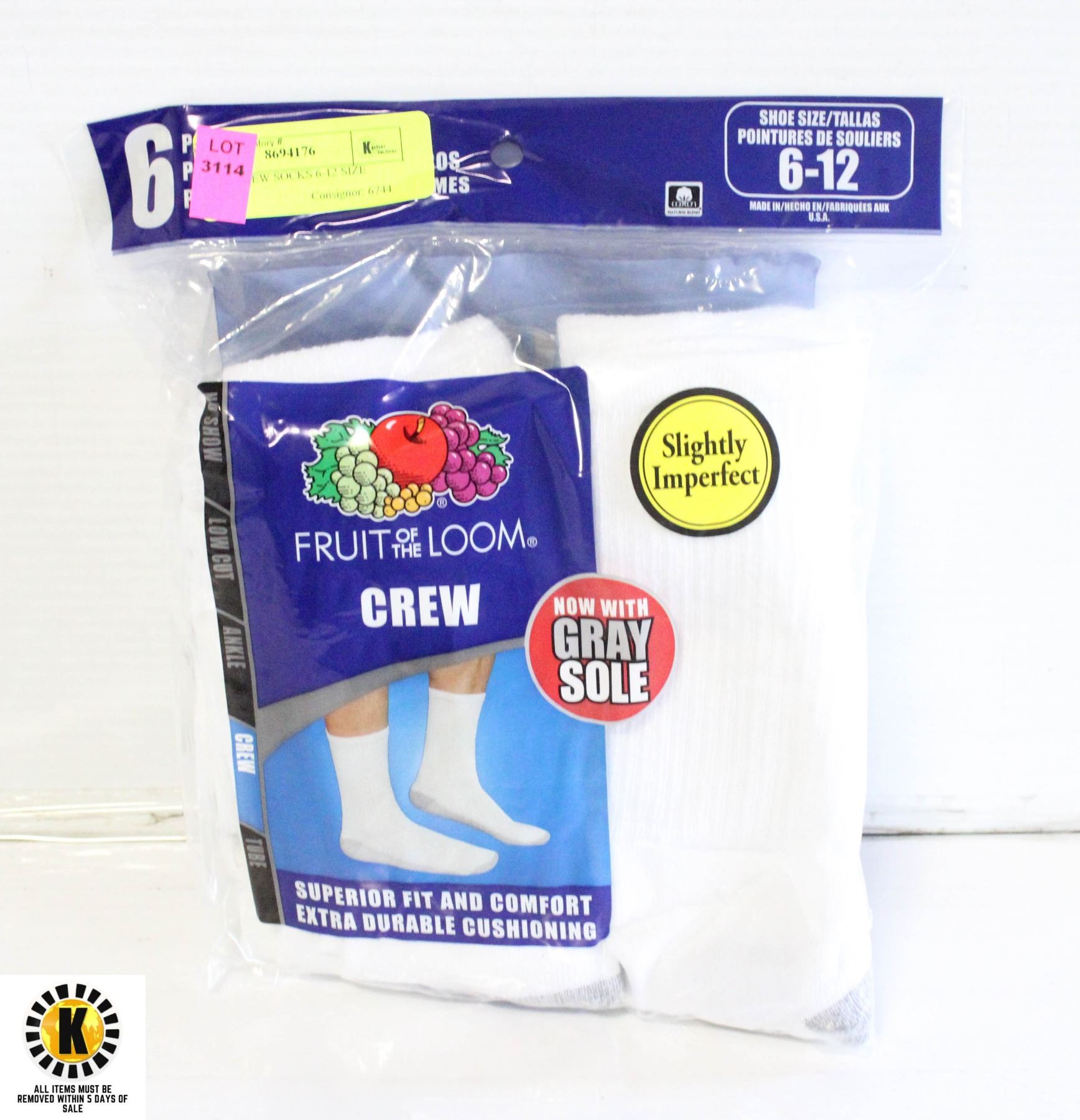 WHITE CREW SOCKS 6-12 SIZE 6-PACK