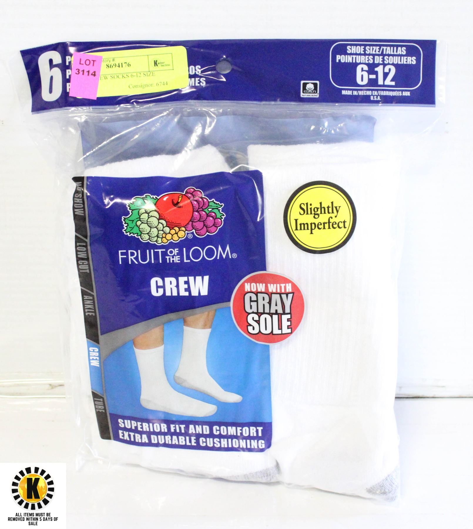 WHITE CREW SOCKS 6-12 SIZE 6-PACK