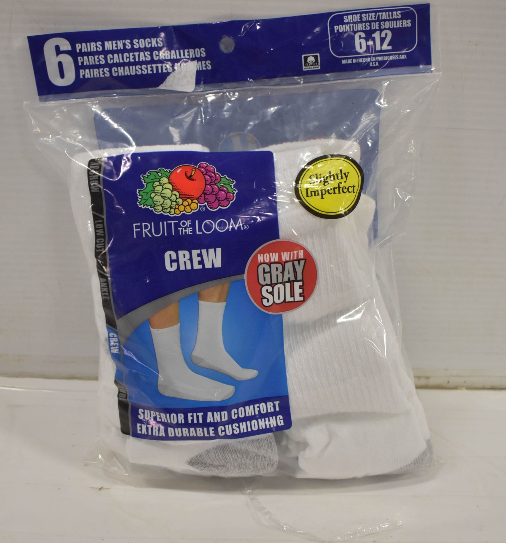 WHITE CREW SOCKS 6-12 SIZE 6-PACK