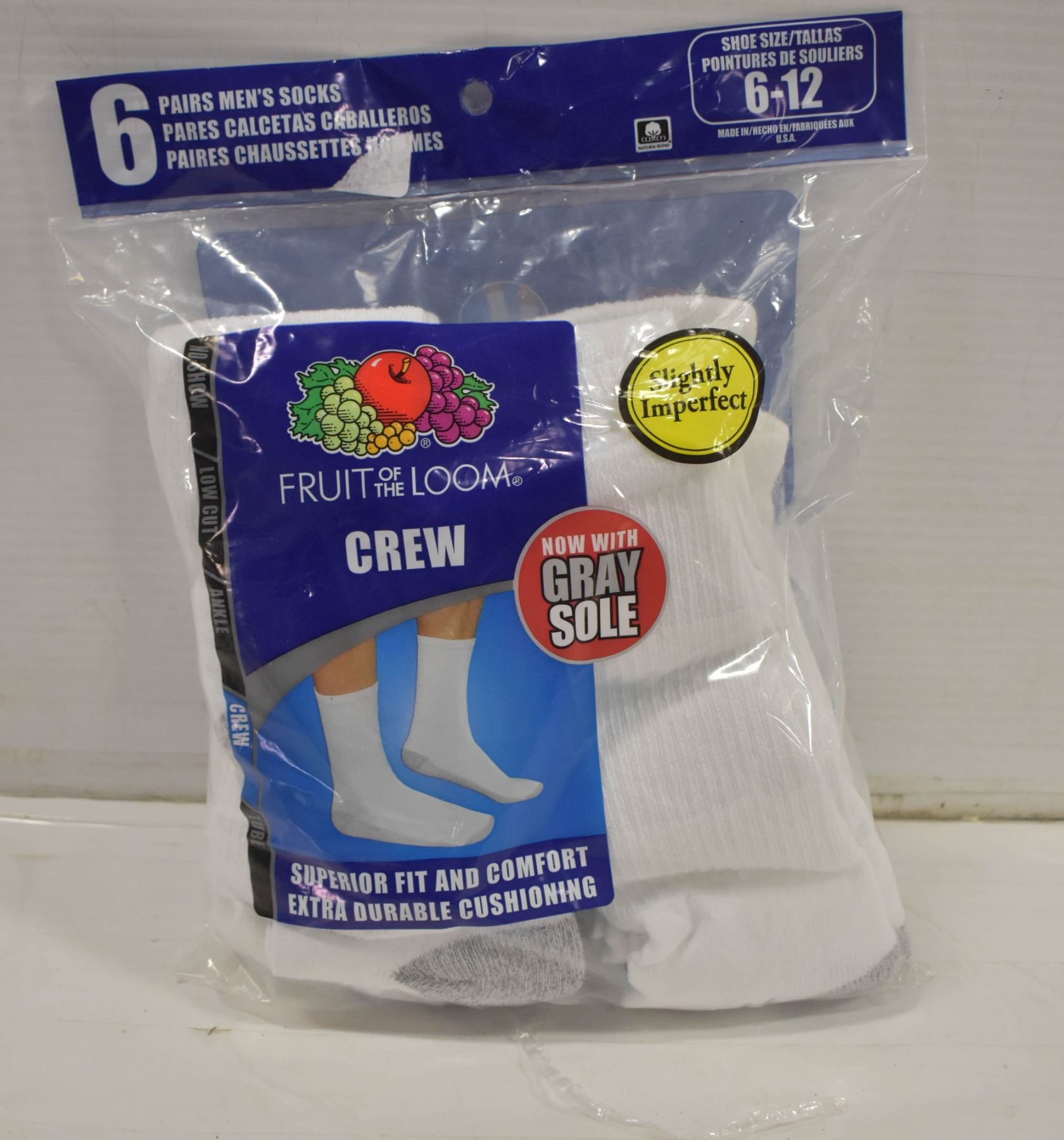 WHITE CREW SOCKS 6-12 SIZE 6-PACK