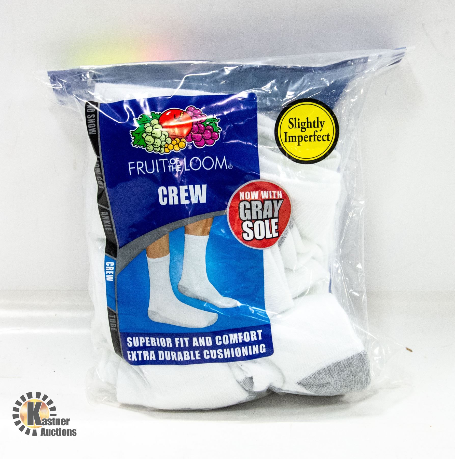 WHITE CREW SOCKS 6-12 SIZE FRUIT OF THE