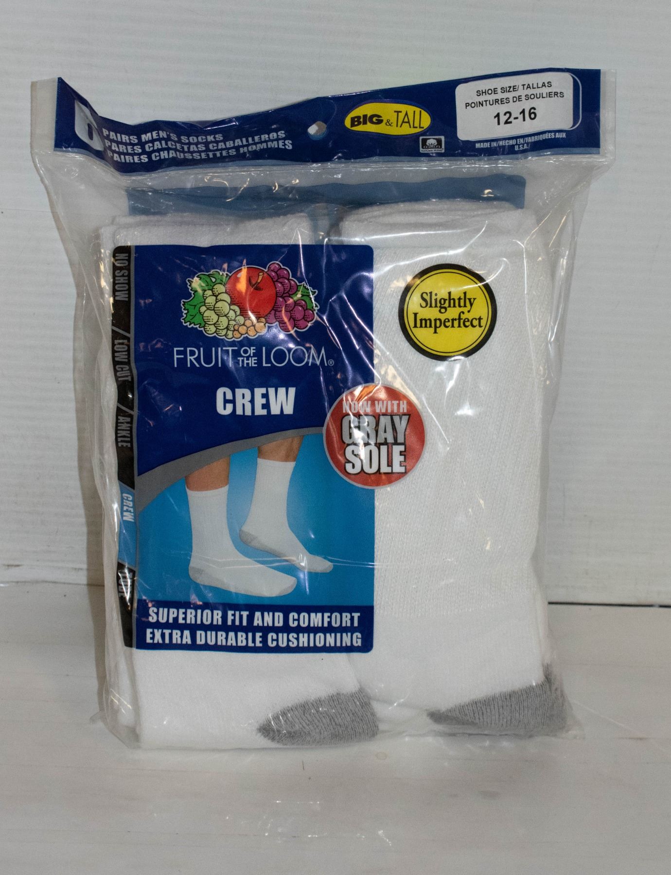 WHITE CREW SOCKS,SIZE 12-16,6-PACK