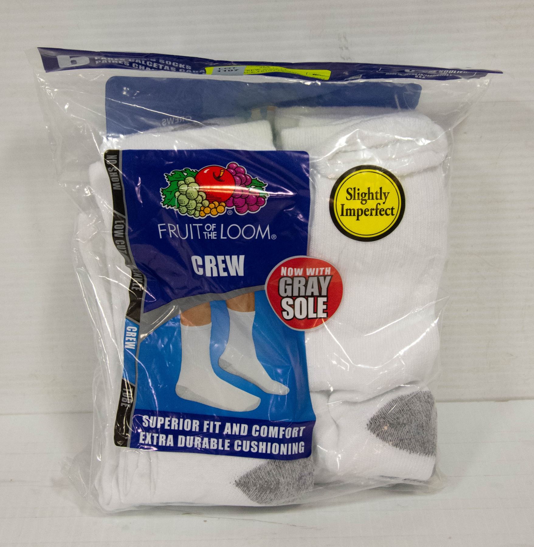 WHITE CREW SOCKS,SIZE 6-12,6-PACK,FRUIT OF THE