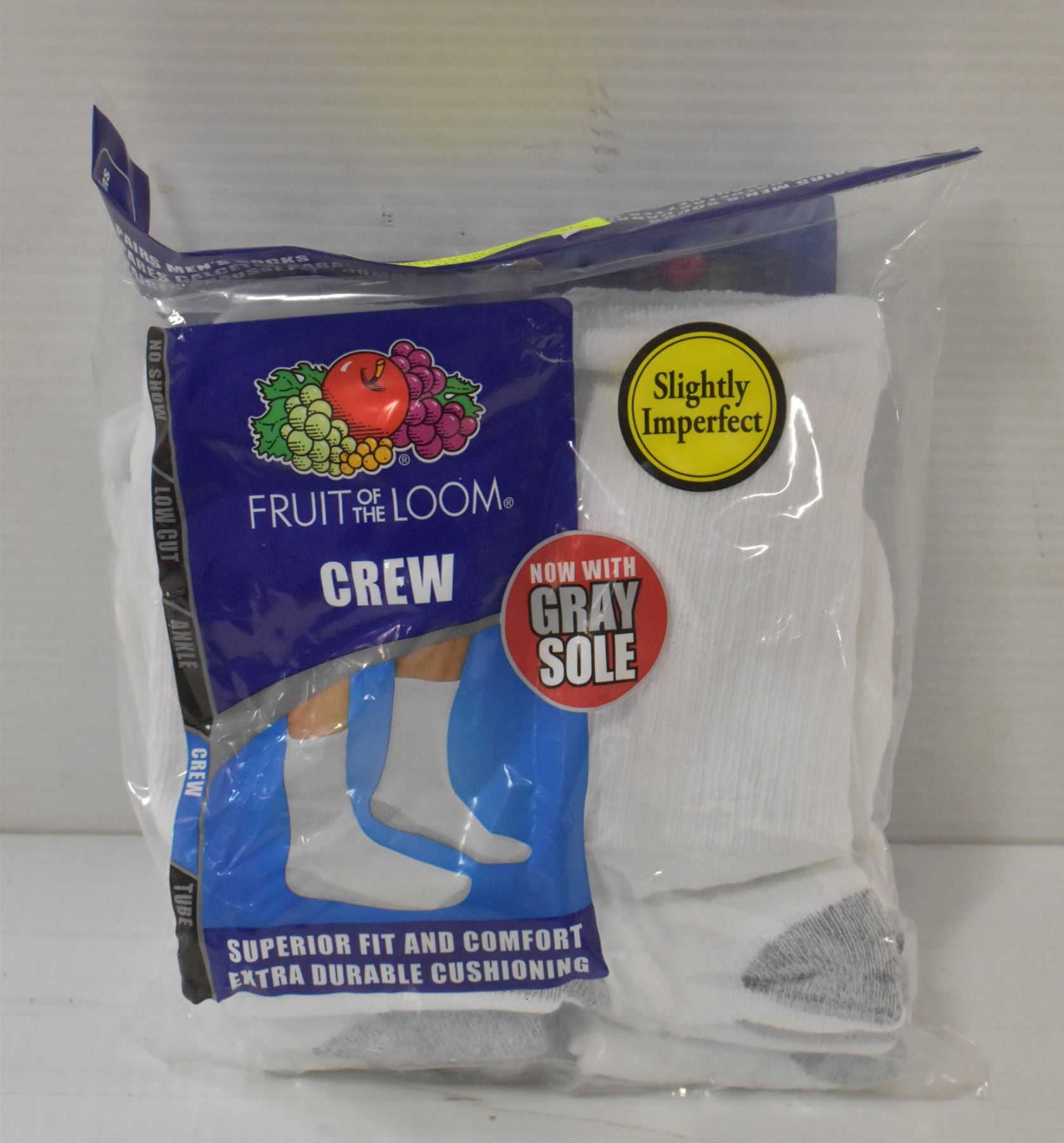 WHITE CREW SOCKS,SIZE 6-12,6-PACK,FRUIT OF THE