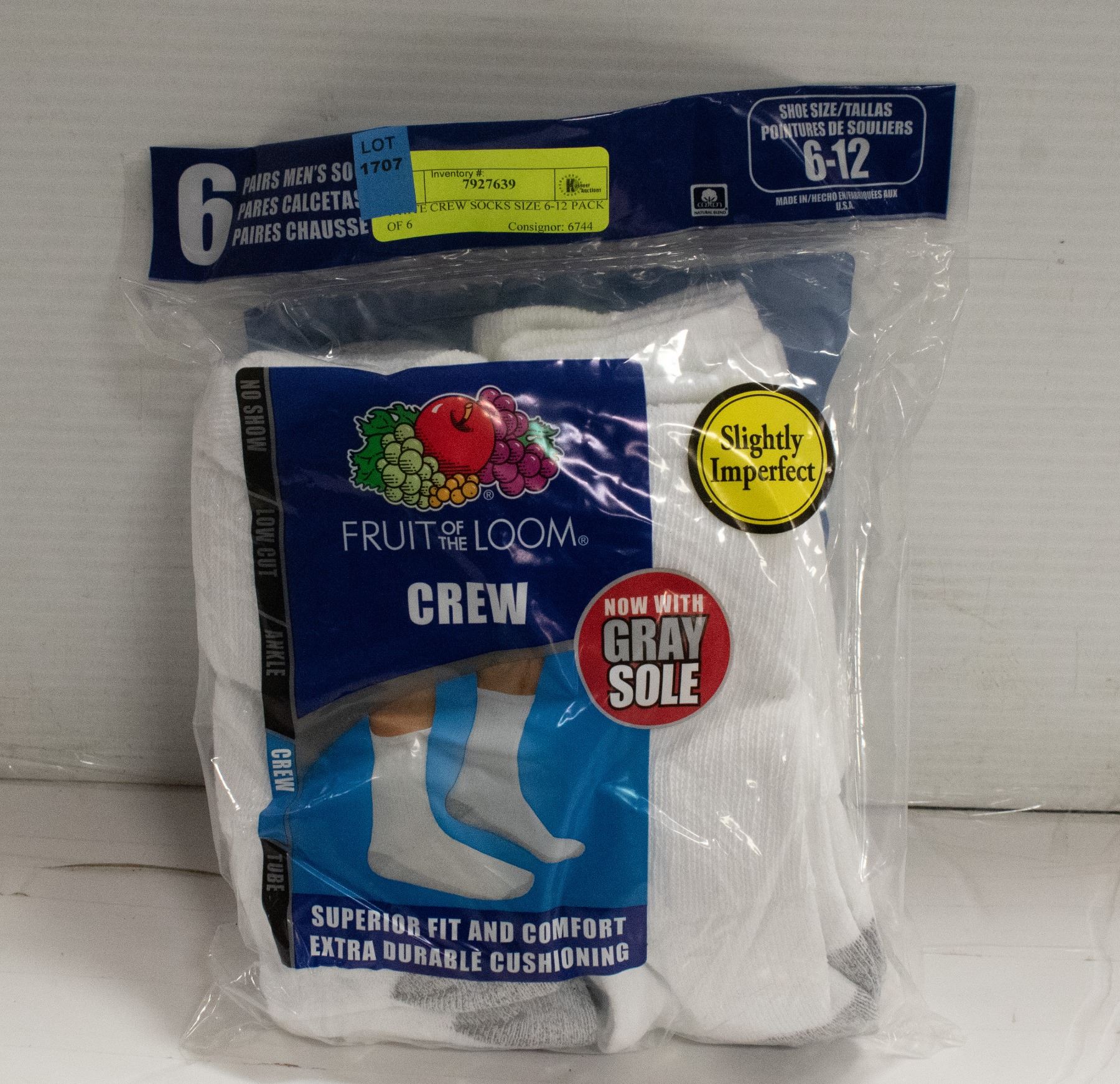 WHITE CREW SOCKS SIZE 6-12 PACK OF 6