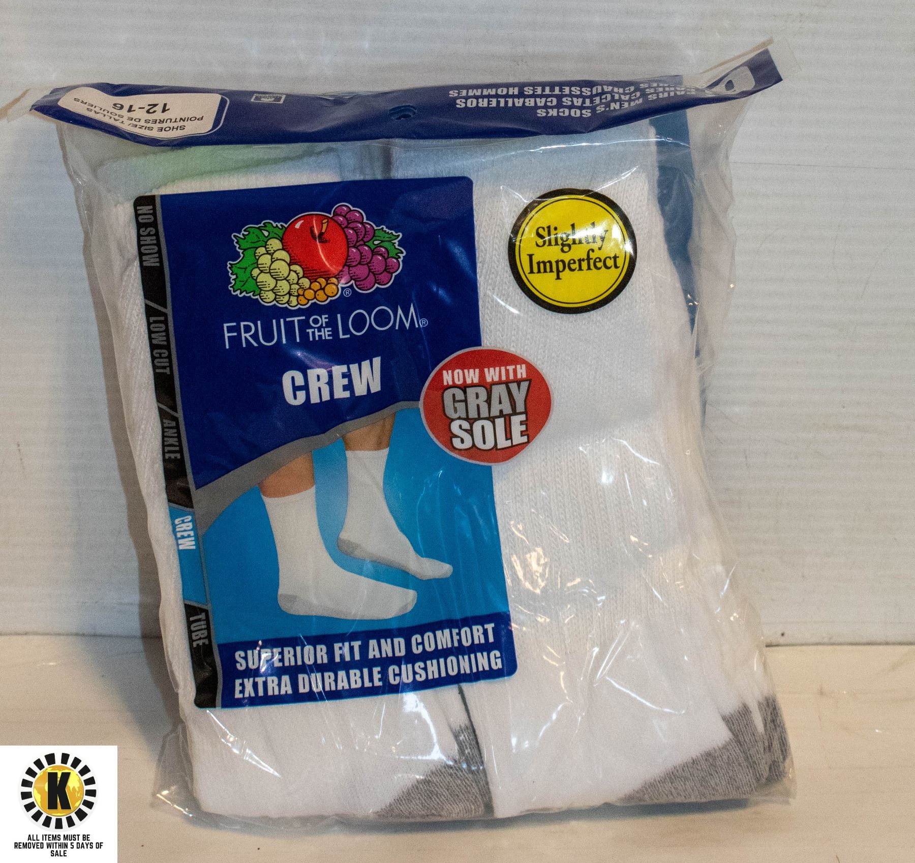WHITE CREWSOCKS,SIZE 12-16,6-PACK,FRUIT OF THE