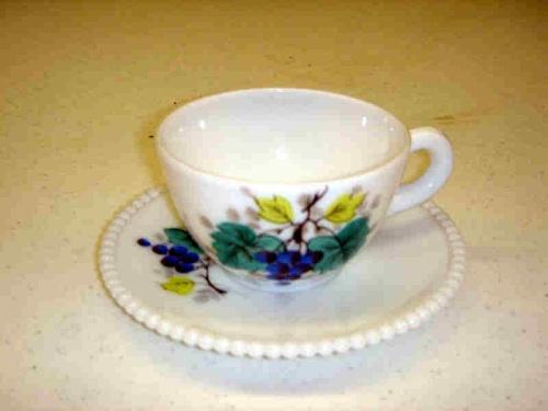 WHITE CUP & SAUCER W/GRAPE PRINT