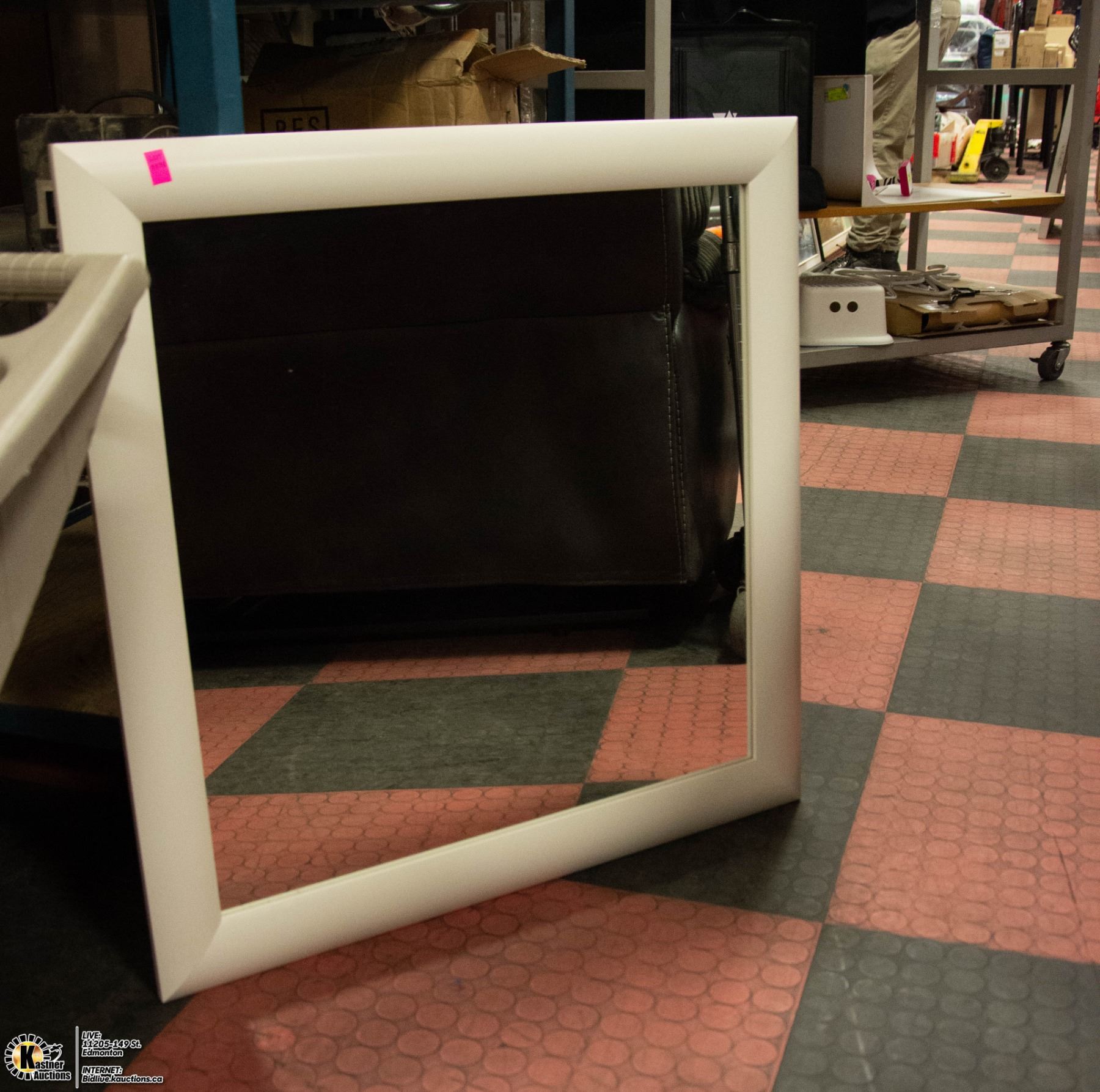 WHITE FRAMED MIRROR APPROXIMATELY 27.5" X 27.5"