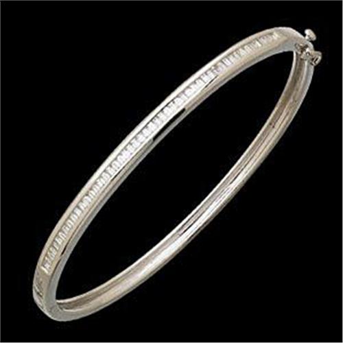 14k White Gold Bangle Bracelet featuring a row of Emerald Cut DIAMONDS across the top. The Diamond Total Weight = ONE CARAT! The Diamonds are 'SI' Clarity and 'H' color and they have LOTS of sparkle! This Bangle Bracelet opens so that you can slip it on easily!