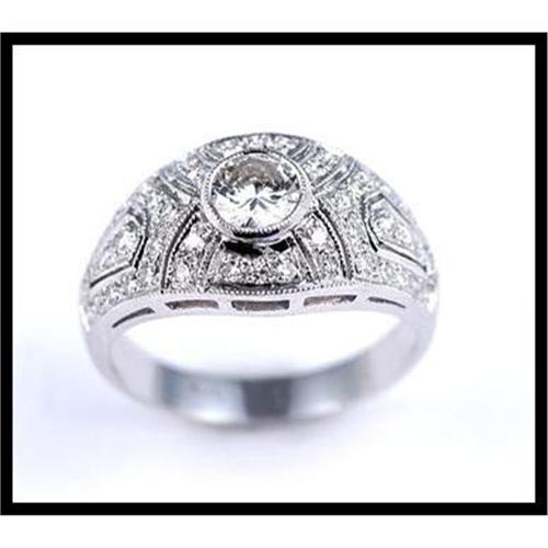 This stunning, high quality ring is set with a .50 carat center diamond (I-J, SI), and .38 carats of similar quality accent diamonds. Top rate workmanship makes this 18K white gold ring a treasure. Size 6 1/2.