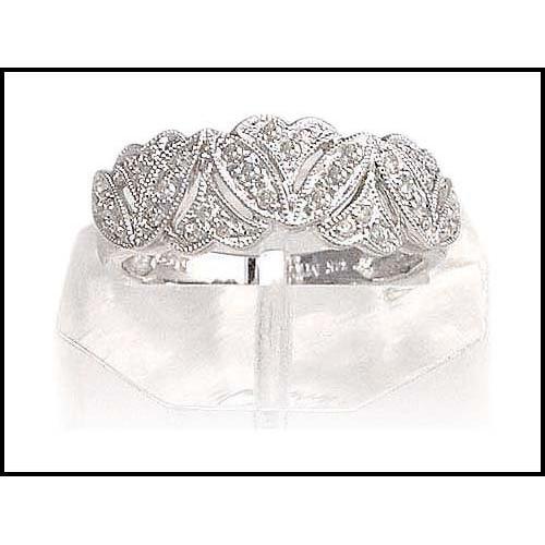 We love this ring, and so will you. 33 brilliant diamonds in 14K white gold create elegance for the wide design 7mm measuring 7mm (5/16") long. Now size 6 1/2, and easy to change. Price was $595.
