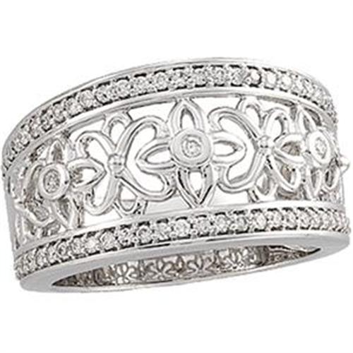 This 14k White Gold Wedding Band is set with 61 DIAMONDS. The Diamonds are all well matched, 'H' Color and they are in the 'SI' Clarity category. The DIAMOND Total Weight = .40 CARATS. This ring is a Size 6 and it can be resized either larger or smaller.