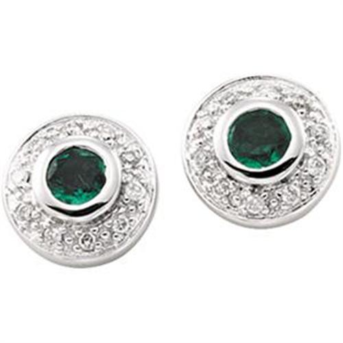 Stunning pair of 14k White Gold Emerald and Diamond Earstuds. Each Earring features a center GENUINE EMERALD encircled by DIAMONDS. The Emerald Total Weight = .35 Carats and the Diamond Total Weight = .10 Carats. The Earrings have post style backs for pierced ears.