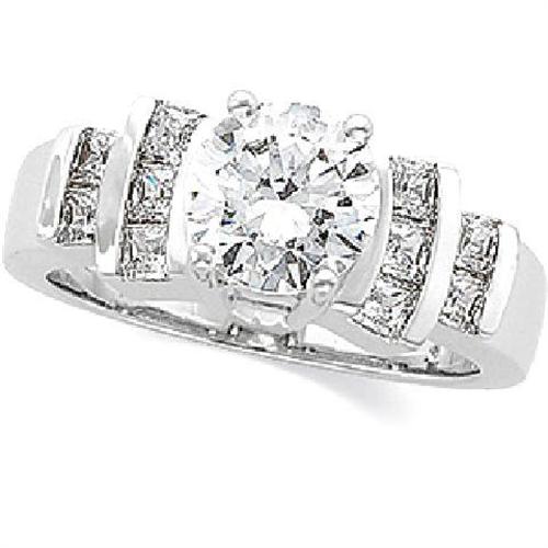 14k White Gold Engagement Ring featuring a center Round Diamond = 1.50 CTS! There are 5 Princess Cut Diamonds each side, and the Diamond Total Weight = 2.30 CARATS! (This ring is also available in Yellow Gold)