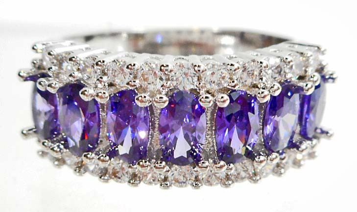 WHITE GOLD FILLED AMETHYST LADIES RING - SIZE 7