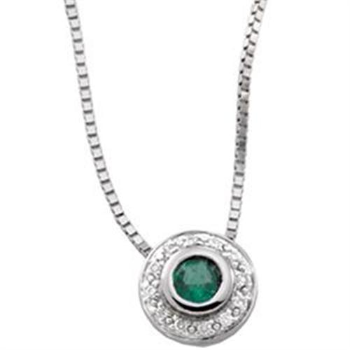 Elegant 14k White Gold Necklace featuring a center Genuine EMERALD = .25 CARATS encircled by Diamonds. The Pendant is set in a 14k White Gold Chain 18" in length.