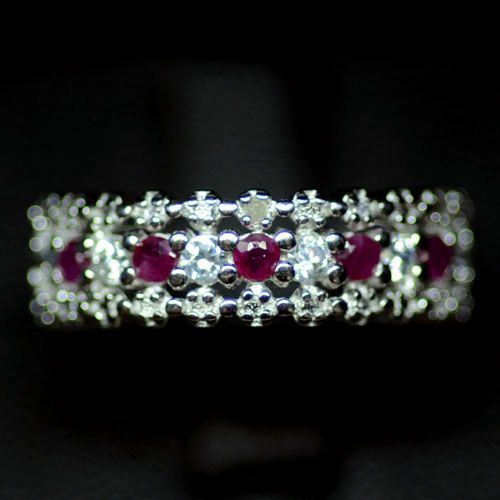 WHITE GOLD OVER STERLING SILVE RUBY RING - SIZE 5.75