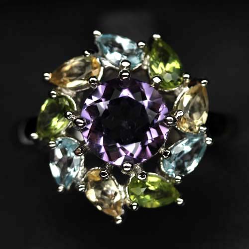 WHITE GOLD OVER STERLING SILVER AMETHYST & TOPAZ RING