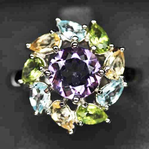 WHITE GOLD OVER STERLING SILVER AMETHYST & TOPAZ RING