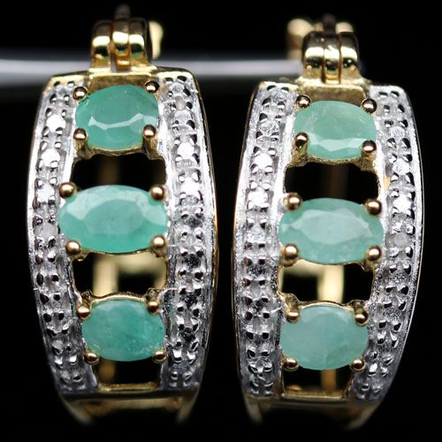 WHITE GOLD OVER STERLING SILVER EMERALD EARRINGS
