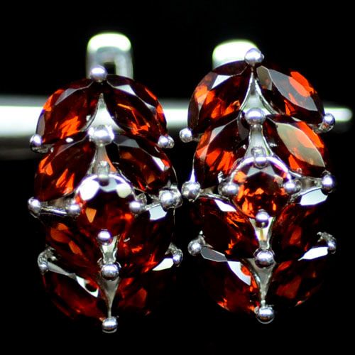 WHITE GOLD OVER STERLING SILVER GARNET EARRINGS