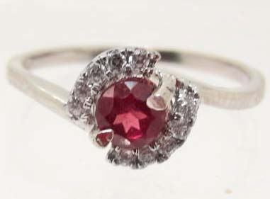 WHITE GOLD OVER STERLING SILVER GARNET RING - SIZE 6