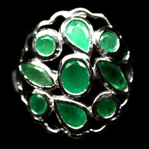 WHITE GOLD OVER STERLING SILVER GREEN EMERALD RING - SIZE 6.5