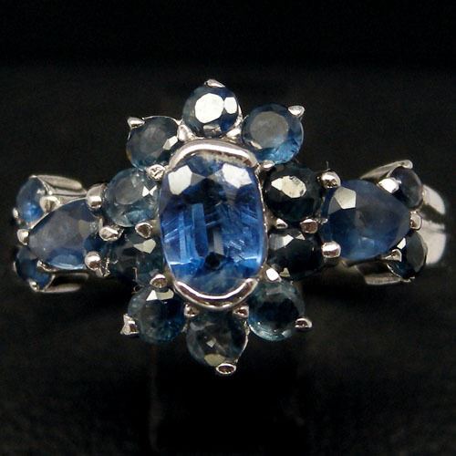 WHITE GOLD OVER STERLING SILVER KYANITE & SAPPHIRE RING - SZ. 5.5