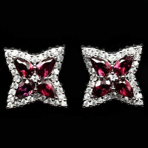 WHITE GOLD OVER STERLING SILVER PINK GARNET EARRINGS