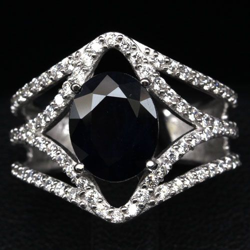 WHITE GOLD OVER STERLING SILVER SAPPHIRE RING - SIZE 7