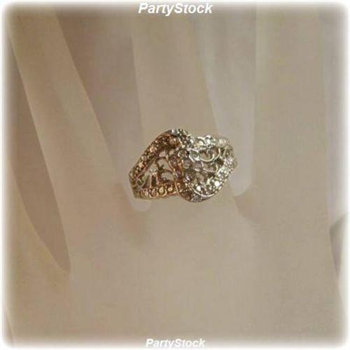 Genuine Diamond Ring of Solid 10 Karat White Gold sets sparkling Genuine Diamonds! Look at the workmanship and exquisite, filigree design of the ring. <p>These High Quality Diamonds are H-I in color, and I1/I2 in clarity. <p> <p> Click on photos to enlarge and view detail.<p> Please see our excellent feedback and satisfaction guarantee below. Click on photos to enlarge and view detail. Thanks for your patronage!