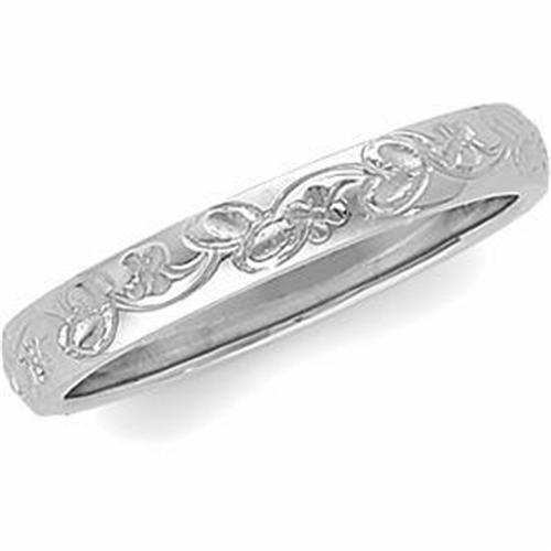 14k White Gold Comfort Fit Design Wedding Band, 3MM wide. This band is a size 6 and can be resized.