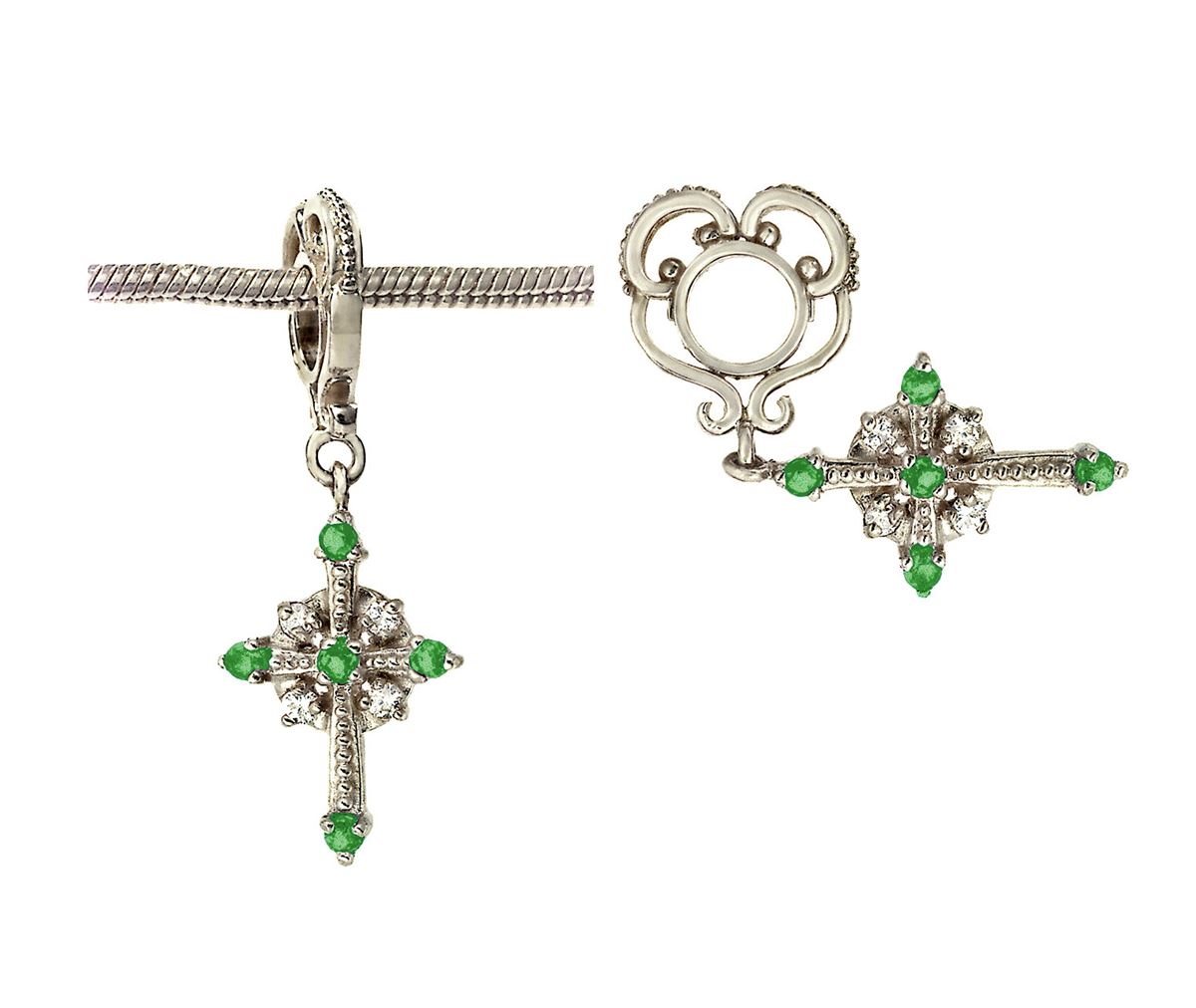 WHITE GOLD WHEEL W/ EMERALD CROSS DANGLE (#27E) TOTAL CT WEIGHT 0.125