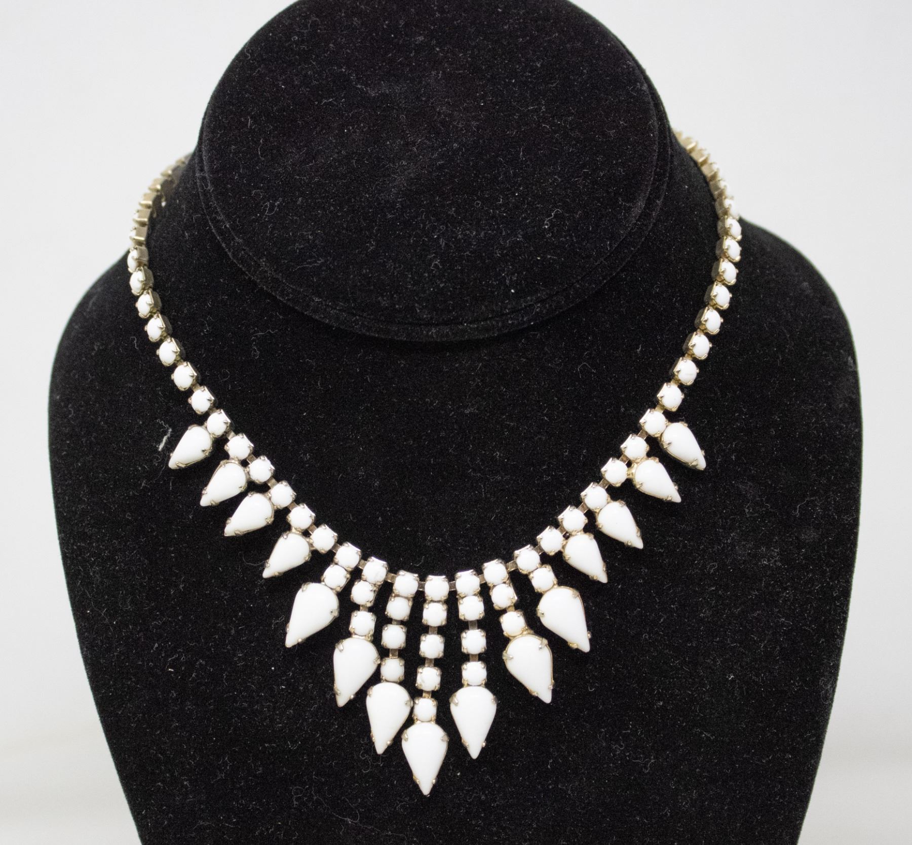 WHITE INSET COSTUME JEWELRY NECKLACE