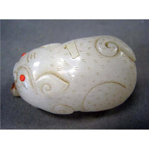 WHITE JADE CARVED SNUFF BOTTLE in the form of a rabbit length: 2 1/2"