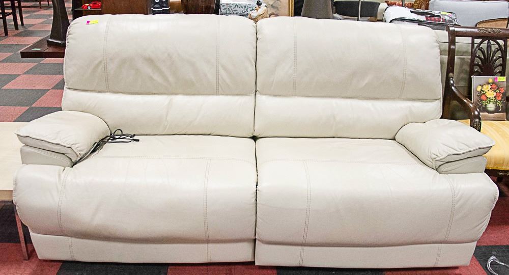WHITE LEATHERETTE ELECTRIC RECLINING SOFA