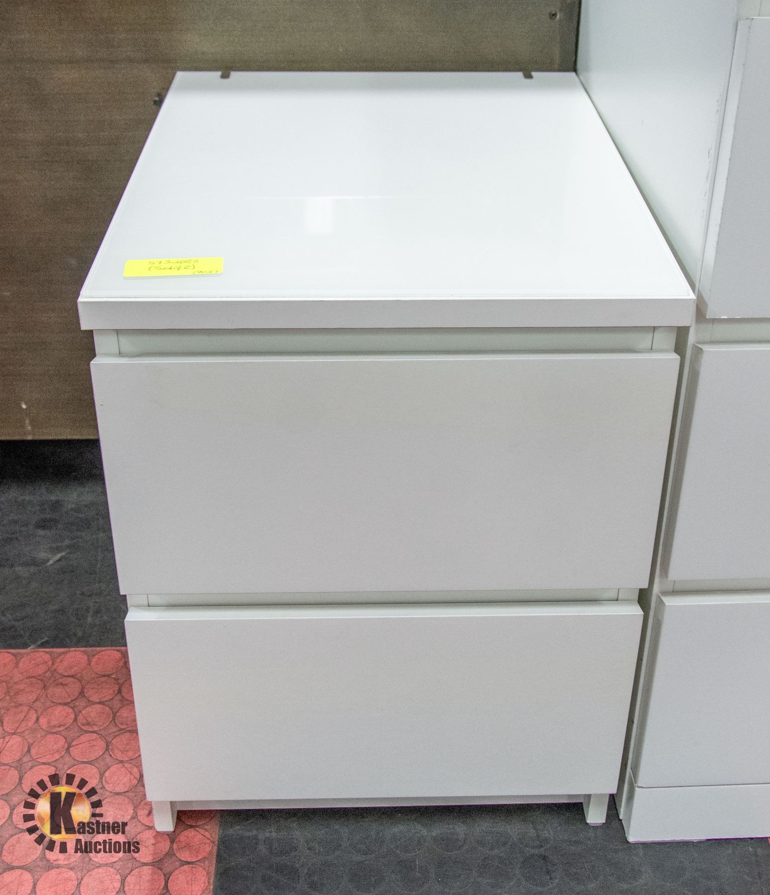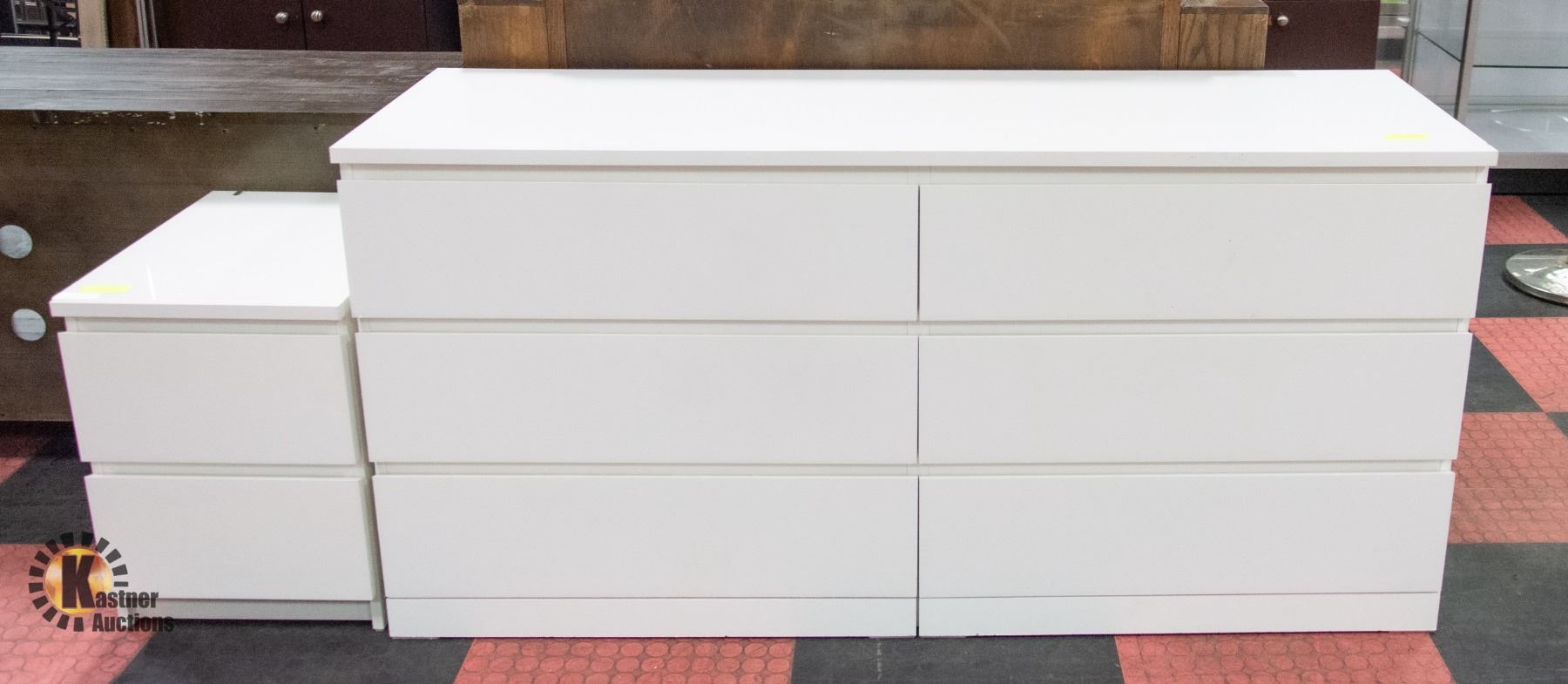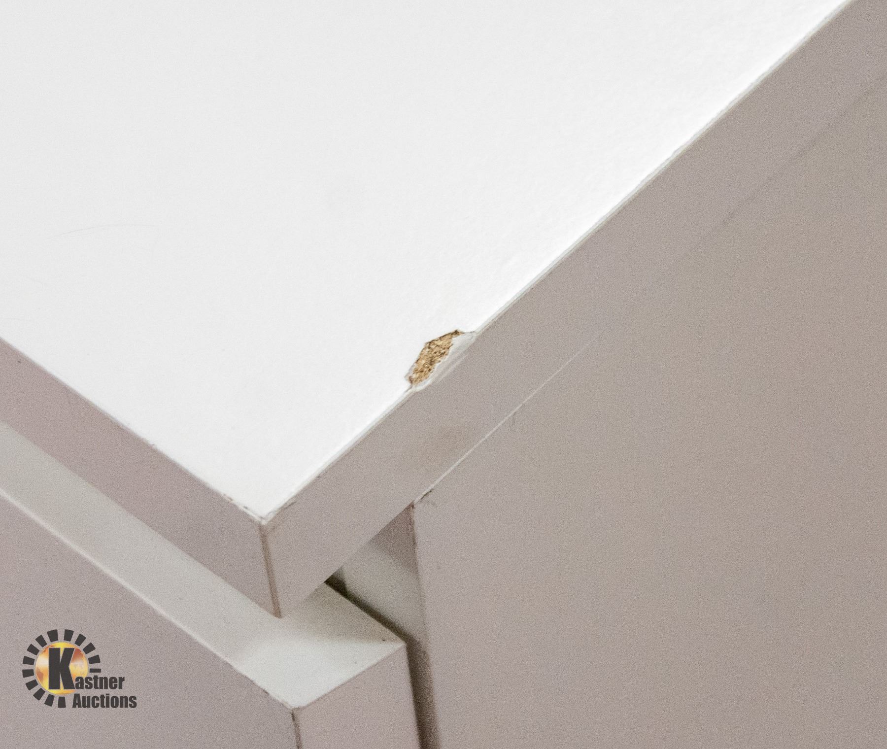 SLEEK EASY ROLL DRAWERS INCL. WHITE 2-DRAWER BEDSIDE TABLE WITH GLASS TOP (DRESSER: 63"L X 19"W X31"H AND SIDE TABLE: 16"L X 19"W X 22"H) **ALL ITEMS MUST BE REMOVED BY 5PM SATURDAY, DECEMBER 2ND 2023. ALL REMAINING ITEMS WILL BE SUBJECT TO A $6.00 PER DAY STORAGE CHARGE. ANY ITEMS REMAINING AFTER MONDAY, DECEMBER 18TH, 2023 WILL BE CONSIDERED FORFEITED. NO REFUNDS WILL BE ISSUED FOR FORFEITED ITEMS. TO SCHEDULE A PICK UP APPOINTMENT CLICK HERE