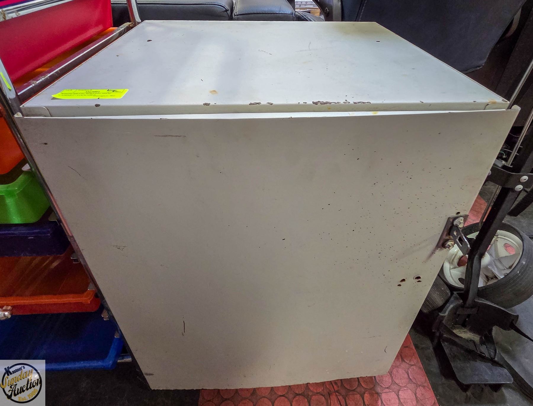 WHITE METAL ROLLING SHOP CABINET - LOCKABLE,