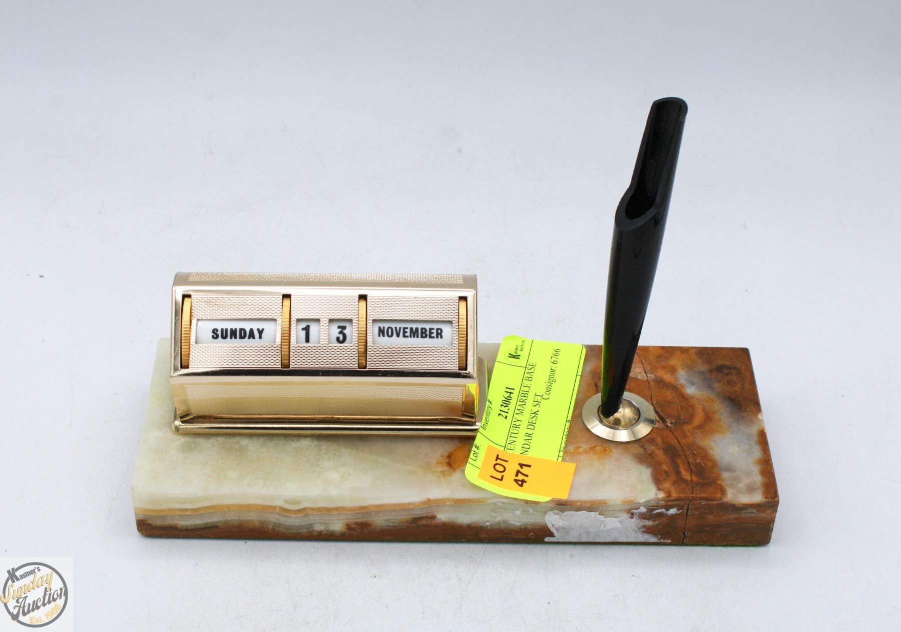 WHITE ONYX STONE BASED DESK CALENDAR PEN HOLDER